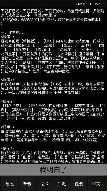 这是最近比较热门的一个文字武侠风格的游戏,经典的玩法,在这里有着奇妙的体验,你可以解锁更多的货币,不断地加强自己的人物然后去战斗,成为一代大侠,非常简单的玩法!