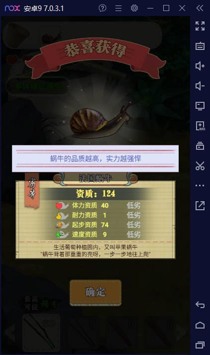 多余的蜗牛能够出售,取得不菲的收入,还能差遣蜗牛去旅行,旅行归来时总会带来一些礼物。