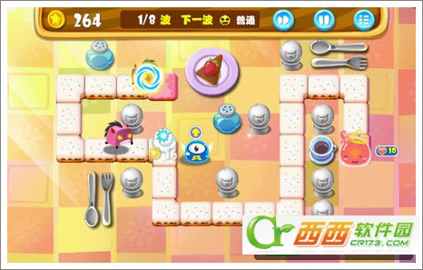 (3)摧毁场景中的道具,如茶杯、蛋糕、锅等,将会获得额外金币奖励,在最后一波来袭前最好将先将场景全部破坏掉可以升级更高阶的防御塔。