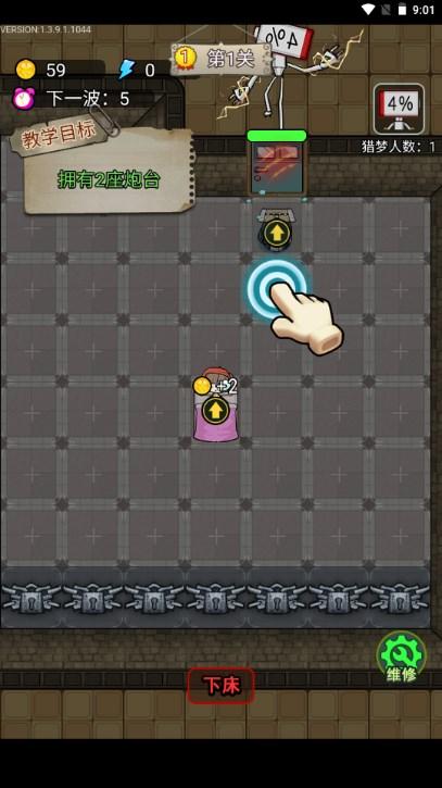 梦中怪谈小游戏(com.yh.mzgt.tf231)是一个猛鬼宿舍类型的手游,这个游戏非常的好玩,我们需要进行猛鬼宿舍类型的当猎梦人或者守护自己的家,只要在床上睡觉就可以获取金币,金币提升门的属性,制作各种各样的炮塔。