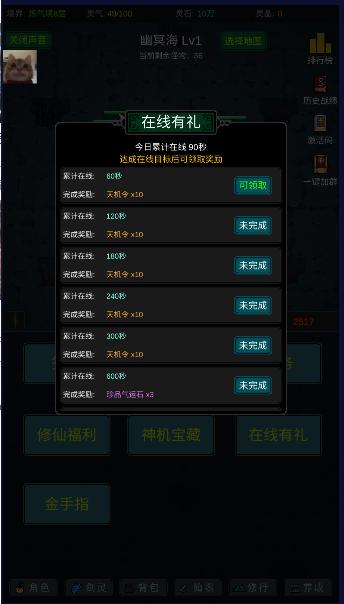 1.进游戏先把5000灵石兑换码和开区礼包码用了,然后看10广告,然后点满五十次广告,商店梭哈抽奖。(后续留足够的灵晶给道心感悟买菩提之心,这玩意加成贼高)