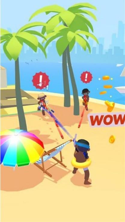 小心的保护好自己,不要被标识到,在自身安全的前提下将所有对手打败,全场你最靓,拿起武器就是干,各种各样的玩具枪,跟对手进行战斗。
