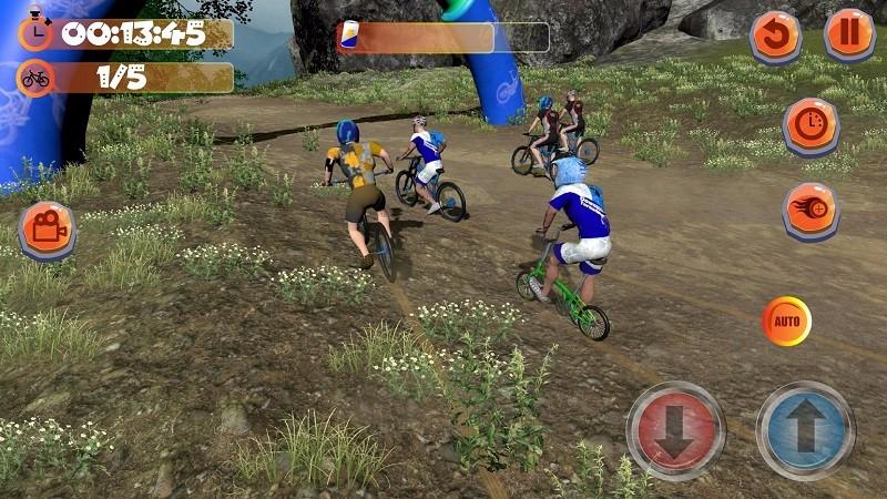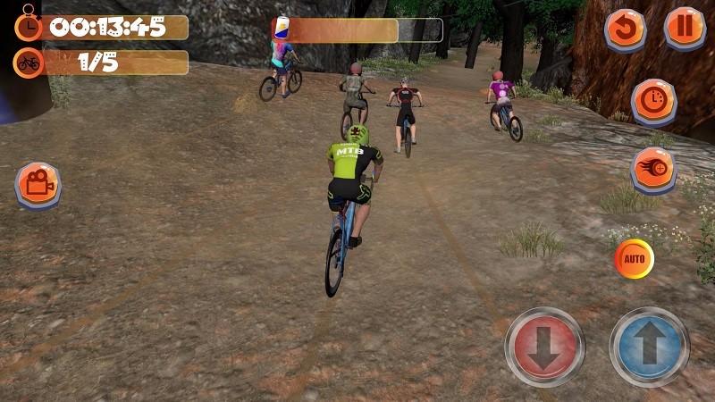 游戏采用的是经典的模拟竞技题材来进行打造,这类游戏比较少见,是玩家骑行山地自行车来和对手进行竞速比赛,在规定的时间内最先通过终点就算获胜。