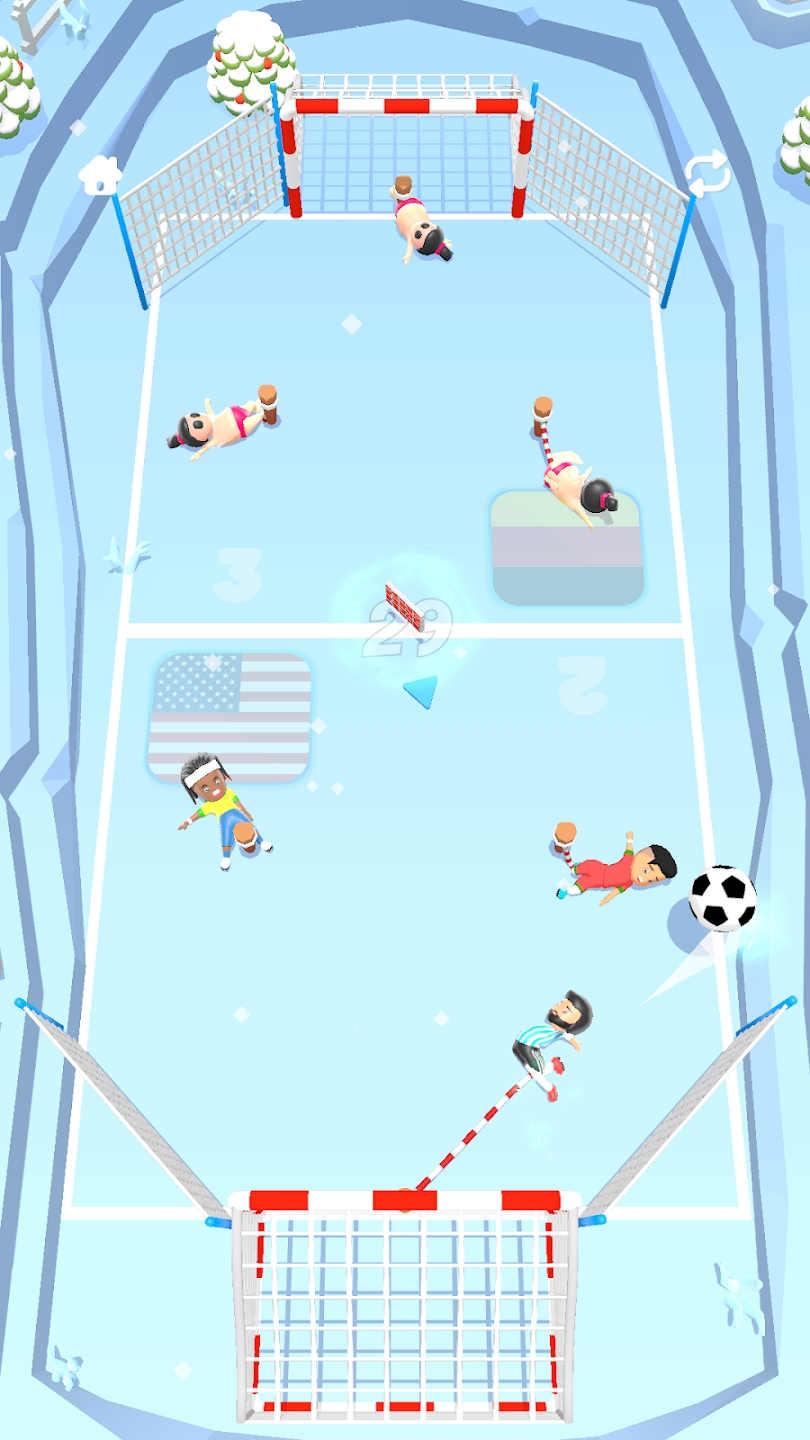 3、比赛的时候只有将足球来去踢到球门里才能够获得的胜利,非常刺激的足球战斗等你来战;