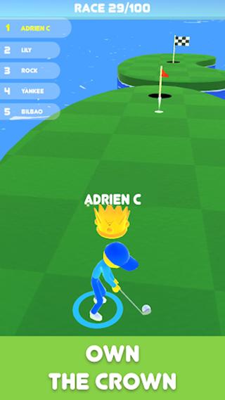 高尔夫比赛是一款创新的高尔夫体育动作类游戏,融合了IO元素和全球玩家同屏竞技的特点,玩家扮演火柴人,与其他玩家一起击球冒险,在各种关卡和障碍物的挑战中竞技,力争率先将球打进洞口得分,操作简单,点击屏幕控制火柴人举起高尔夫球杆,松开屏幕击打球。