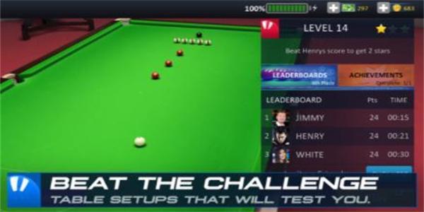 3、技巧磨炼:通过不断游戏提高自己的得分,玩家可以锻炼和提升自己的台球技巧。