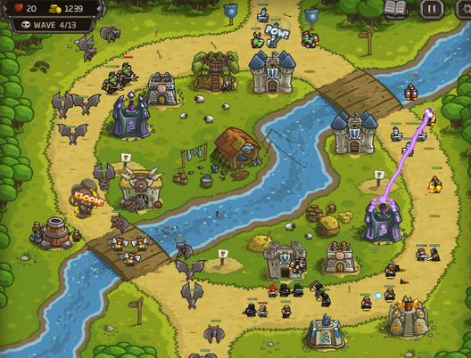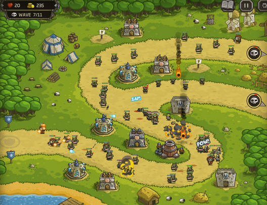 《王国保卫战 Kingdom Rush》又叫《皇家守卫军》,是由乌拉圭的Ironhide Game Studio游戏工作室于2011年制作的一款塔防类FLASH游戏。游戏一经推出即广受好评,游戏媒体将其评价为目前塔防类游戏中当之无愧的王者,之前移植到iOS平台也一致获得好评,现在终于登录安卓平台了。游戏系统的完善细致,对策略性的要求较高,各方面细节表现惊人。游戏有多个主题场景,平原,森林,雪地,冰原,燃烧之地等,根据战争的步伐,你会逐一进入这些不同的战场。游戏提供4种基础单位的防御塔,兵营,魔法师,弓箭和炮台。每种防御塔有三种基础形态和两种进阶形态,并且在进阶形态中,还可以转职为带有不同附加攻击属性的防御塔。