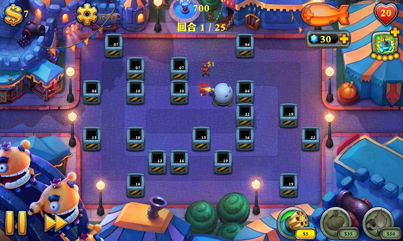 炮塔和道具的搭配使用可以给予敌人极大的打击。玩家的操作目的是在敌兵到达终点之前将其消灭,每击杀一个敌兵都会得到数量不等的金钱,金钱可继续用于购买防御塔