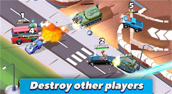 在游戏中以碰撞挑战为核心玩法,玩家需要驾驶自己的碰撞车与其他在线玩家战斗并控制汽车与其他汽车相撞,如果汽车成功进行撞击那么汽车将被摧毁,您将能够收集一定数量的皇冠感受乐趣。