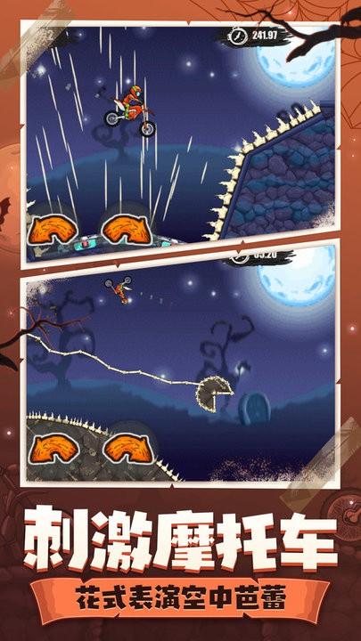 登山摩托车6万圣节是一款模拟赛车驾驶游戏,玩家们的每一次的冒险闯关都充满了刺激,多种不同的关卡的带来的体验感也是不同的,考验玩家的操作技术感兴趣的玩家来体验一番吧。
