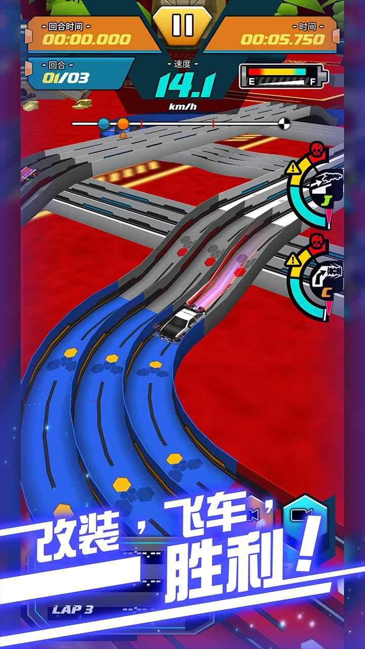 4、卡通的画面呈现方式,能让你与尽享其中,自由去闯关来去拿到冠军,获得四驱车神的称号吧。