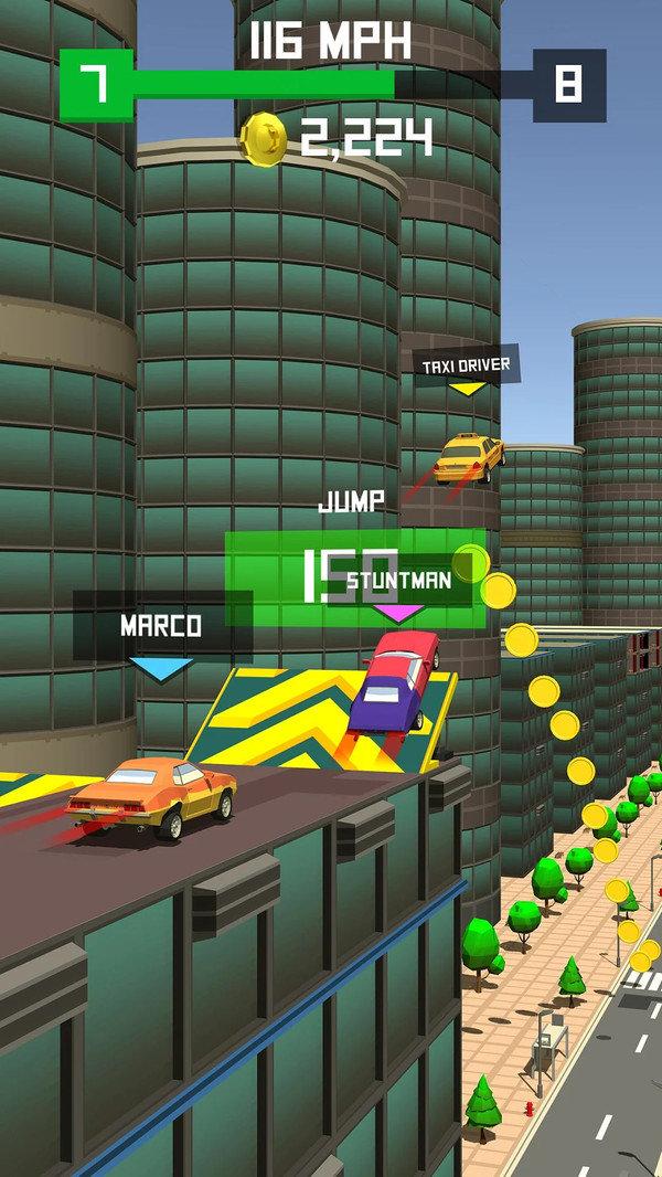 1、疯狂的在屋顶上面去进行一场最为刺激的赛车竞速赛,参与到比赛当中去杀死路上遇到的每一个玩家去吧;