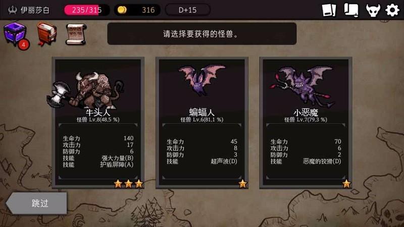 游戏中融入了roguelike的玩法,玩家在每一次战斗都会遇到不同的勇士,你需要搭建更加强力的地宫来阻挡更加强大的勇士,还有不同的命运可以选择,体验新奇。