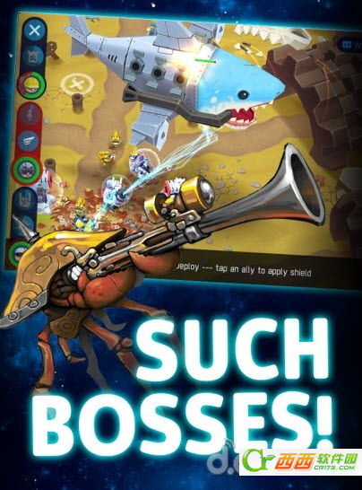 最强塔防 OTTTD是一款3D塔防游戏,这款游戏的核心玩法和传统塔防游戏并无二致,在敌人前进的路径上放置防御建筑,升级建筑,解锁新的建筑,保护你的基地。但游戏又有着自己的独特风格。首先,游戏的未来科幻风极为抢眼,画面和怪物造型夸张,包括北海巨妖,丧尸飞鲨,战斗巨龟,以及骑着摩托挥舞菜刀的章鱼怪等一系列角色令人由衷佩服制作团队天马行空的想象力。《OTTTD》有许多单位,有拿激光枪,火箭炮,甚至是大茶壶(泡茶?),它们可以帮助抵御敌人以及对防御塔进行维修(大茶壶是你吗?)。敌人造型千奇百怪,有着坦克身体的海豚、机械手脚的鲨鱼、长着四个轮的丧尸等。Boss的造型也更加有趣,超大只的僵尸坦克、机械海怪、甚至最搞笑的还有骑着摩托车的“小八”(海贼王章鱼人)。