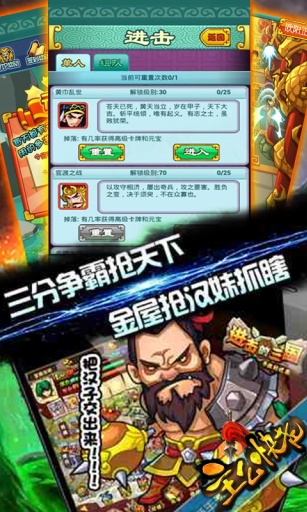 《主公快走》是一款以集国战团战、剧情关卡、武将养成等诸多玩法于一身的游戏,将中国三国策略手游提升到一个新的高度。玩家在游戏中,不仅可以享受武将搭配和阵型变化的乐趣,也可体验剧情通关的快感,更能与数千玩家同战沙场。游戏以攻防为核心,演绎着幻想中轻松、幽默的三国故事,玩家能充分体验到攻守双方之间的激烈对抗和游戏操作上的便捷快感。 游戏中,您需要通过合理的排兵布阵、升级士兵、使用英雄防御敌人的攻击,取得最终胜利!