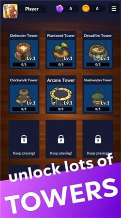 1、不断的去给你的防御塔来进行升级,只要就可以有更强的战斗力了,去好好的战斗和冒险;