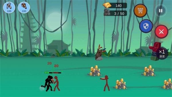 火柴人帝国对战是一款策略与趣味并重的对战游戏,将扮演指挥官,精心构建并指挥一支由火柴人组成的精锐部队,逐步蚕食领土,扩张帝国的辉煌版图,需要巧妙布局战术,精准指挥,以攻为守。