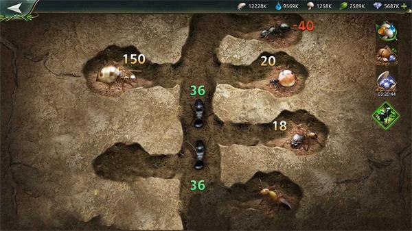 3、不断扩大你的蚁巢,让你的能力更加强大,感受更加激烈刺激的战斗玩法;