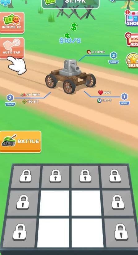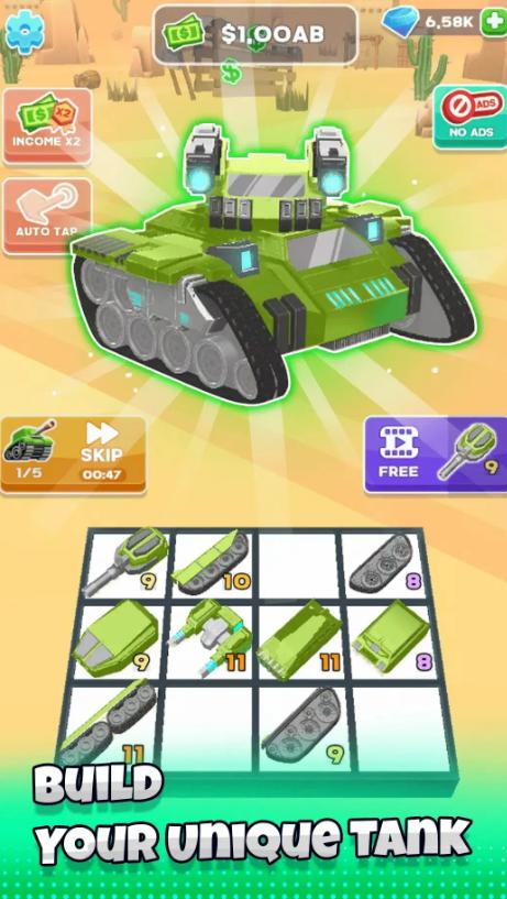 1、玩家可以通过合并相同等级的坦克来升级它们,这种创新的玩法不仅增加了游戏的趣味性;