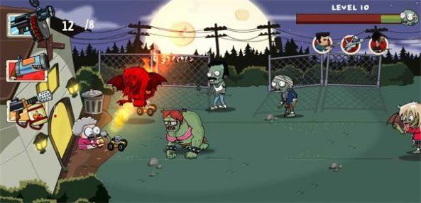 1、当僵尸到来的时候,奶奶就会拿着武器站在自己的家门口去进行射击,突突突的感觉很爽的;