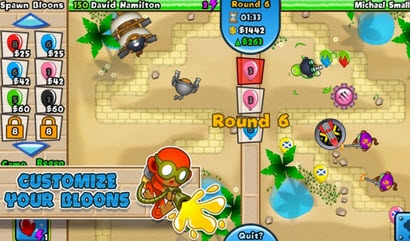 猴子塔防对战版 Bloons TD Battles 是一款经典的策略塔防游戏,游戏还是一如既往的保持可爱卡通的风格,与此同时这款新游戏加入了全新的塔防升级系统和武器装备系统,并突破性的加入了在线PK对战模式,可以和自己的好友较量一下,看看谁的城防更坚固、策略更无敌。游戏有进攻和防守两大模式,在进攻模式中你要平衡好造防御塔的数量和放气球的数量,而在防守模式中你不需要放出气球,而是和你的对手比拼在无限波气球的进攻中谁能存活的更久!不管怎么样,站到最后的人才会取得胜利, 赚取勋章后解锁新的武器装备!