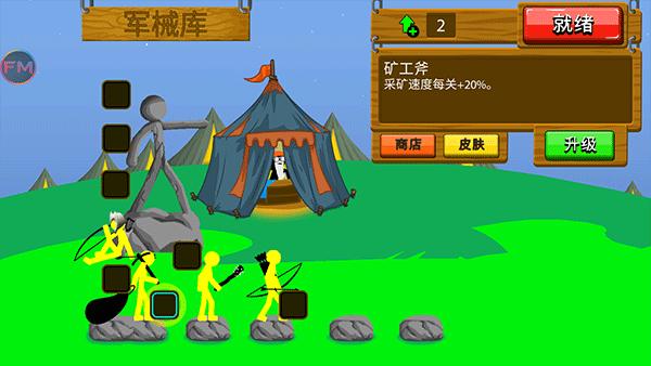 1、通过将剑士升级满级,再进一步升级为斯巴达战士,让火柴人逐渐变得更强大。