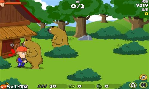 1、【简单轻松】塔防的玩法是比较简单的,控制着光头强来保护好自己的小木屋,阻挡僵尸熊;