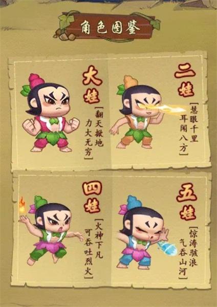 - 重现了葫芦娃动漫中各个人物角色独特的技能,让你能真实感受到各个葫芦娃的特点。
