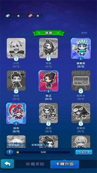 -游戏中拥有150种三国武将卡牌,玩家可以通过在玩法中取得胜利获得卡包,卡包可以开启获得英雄牌;