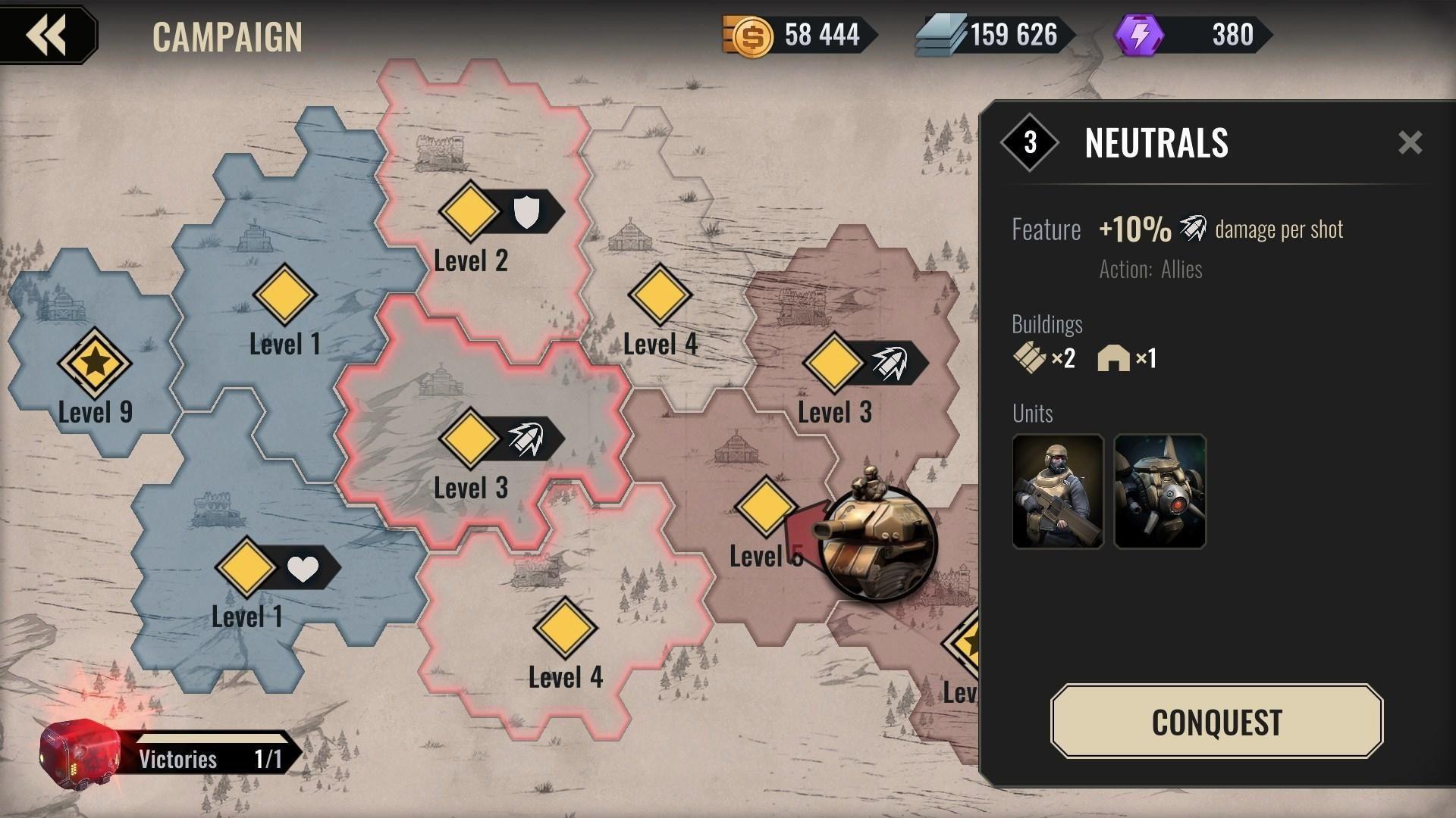 3、去收集并强化各种武器和设施,之后在不断的去投入你的资源,打造厉害军队;