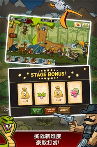 2、你需要操作屏幕上的猴子跑到前线,要去捡起敌人掉落的食物,也是很重要;