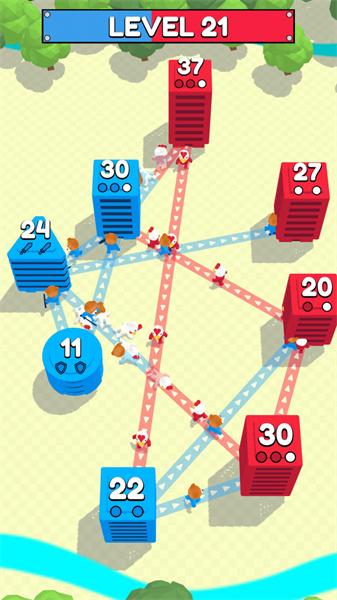 2、塔防占领:在小镇争夺战中建造高塔,利用它们来击败对手并占领城镇,成为领土的主宰。