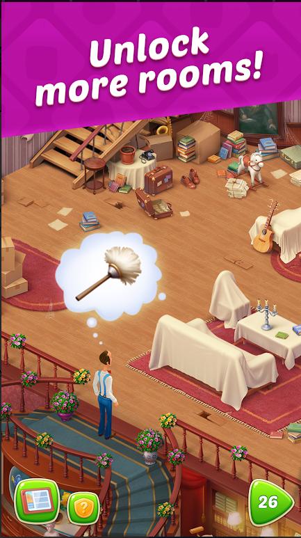 闯过色彩缤纷的三消关卡以整修和装饰豪宅内的房间、在闯关过程中解锁刺激家族故事的更多篇章!你还在等什么?别客气!
