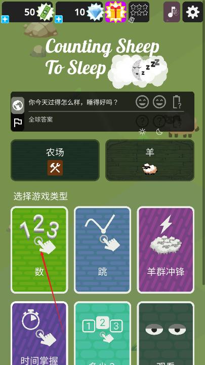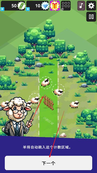 -数数:保持专注,在绵羊跳过栅栏的正确时间数数它们。不要犯错误,赚取奖励积分,达到目标分数会奖励额外的生命!