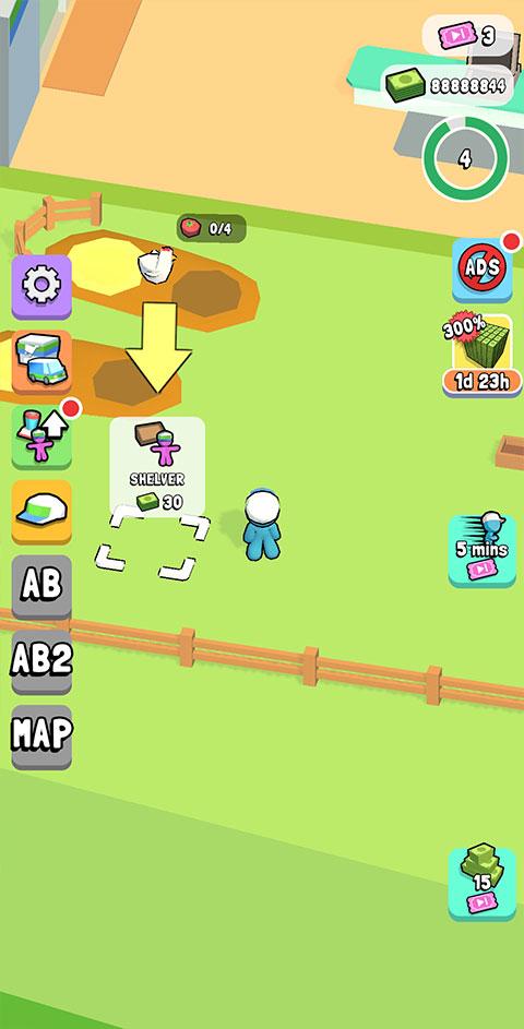 1、进到游戏后,通过滑动屏幕控制小蓝人移动到方框位置,即可使用金币解锁收银台。