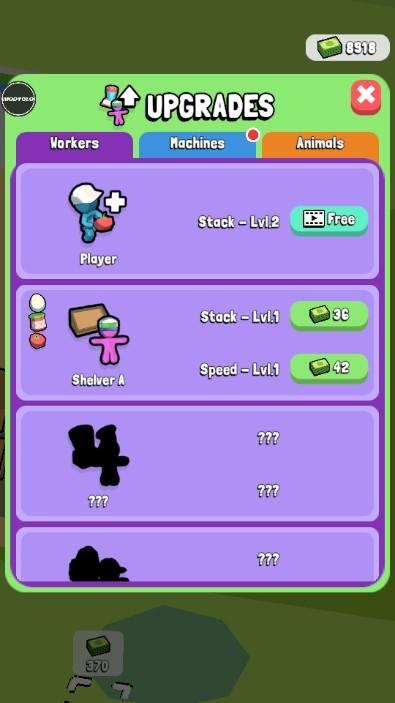 6、挣的钱越来越多之后,陆续解锁更多的货架以及食物品类,把超市做大做强!