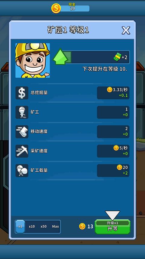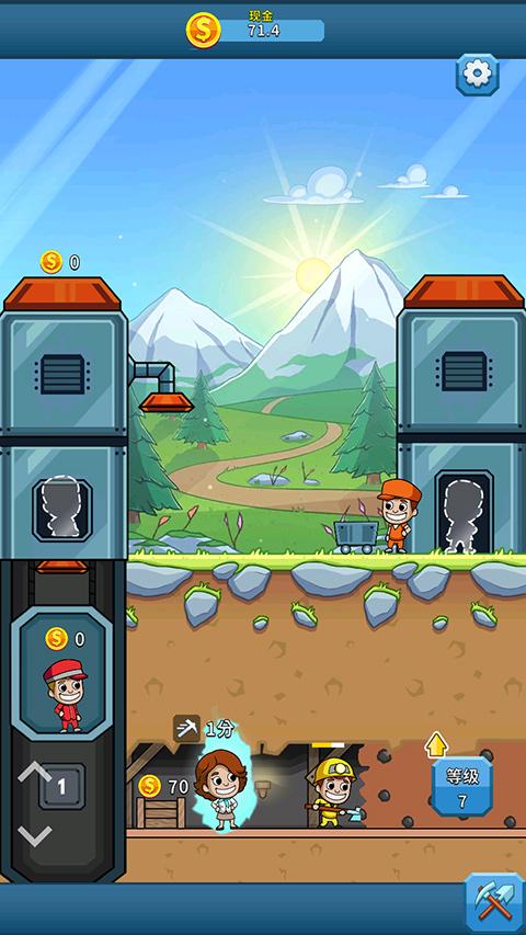 这是一个非常有趣的挖矿模拟经营游戏,你成为了一个挖矿大亨,你需要组建一个完整的生产链,在这里你可以无限金币,使用更多的人手,打造大型挖矿游戏。