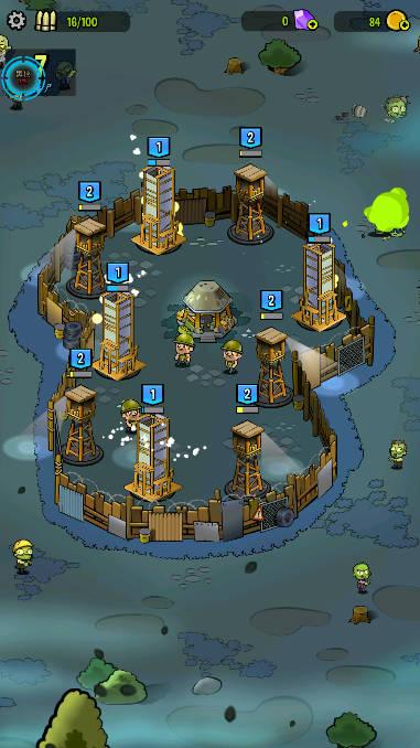 1、玩家需要在自己的领地里建造防御塔抵御僵尸