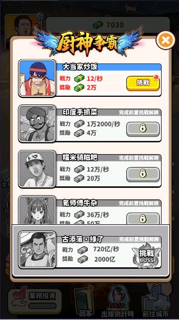 除了令人兴奋的厨房挑战外,我们还为你提供了丰富多样的大世界玩法,新版本更是加入了业务投资、抢亲环节!