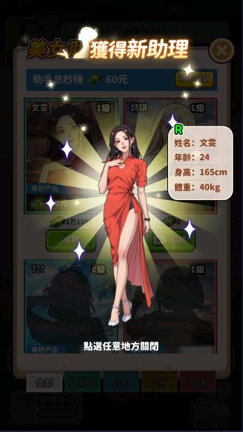 首先第一个彩蛋可以通过中央公园的许愿树触发,找到许愿树之后摇晃它即可落下来一枚桃花,将桃花放回树顶,之后再次摇晃,即可获得每秒能增加4200亿收益的SSR助理桃花妖!