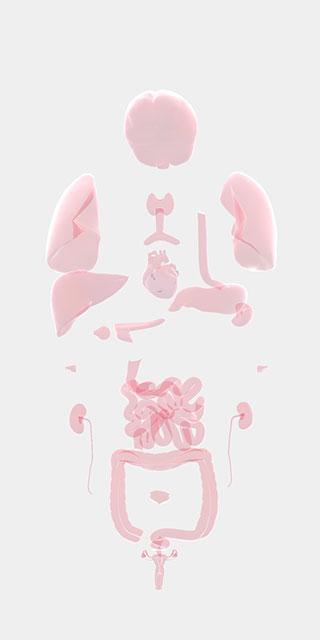 4、我们用手指向屏幕两边进行拖动,会将人体器官分开显示,这样会更有助于我们查找对应器官,点击屏幕中央,器官又会聚拢在一起。