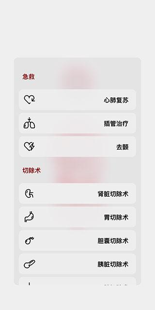 11、点击右下角的手术刀图标,可以为模型进行相应的治疗措施,其中包括了急救术和切除术等。