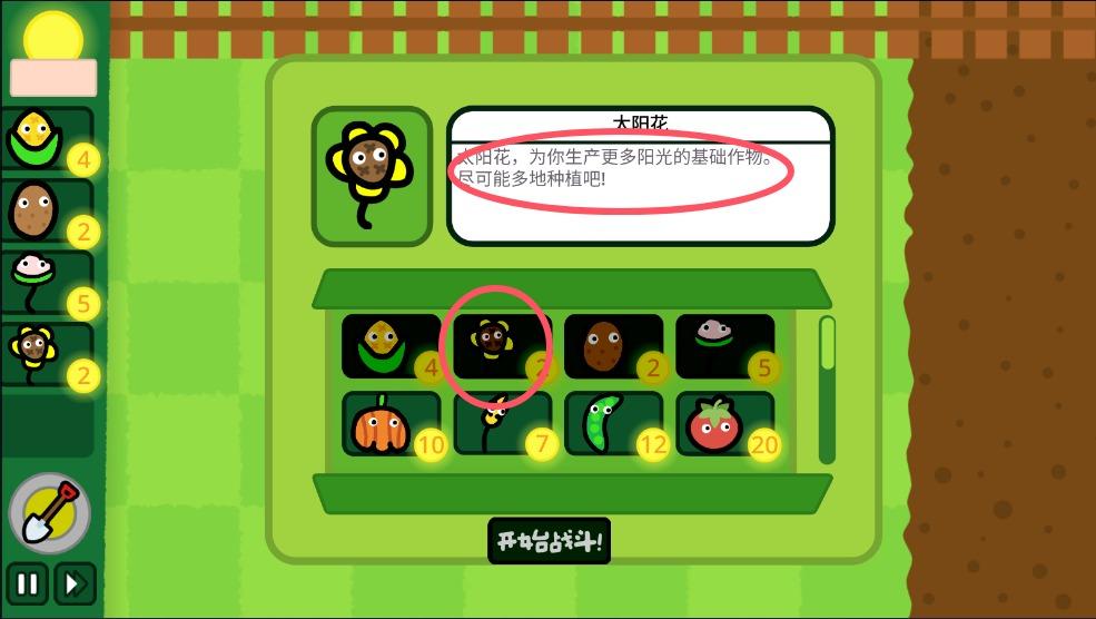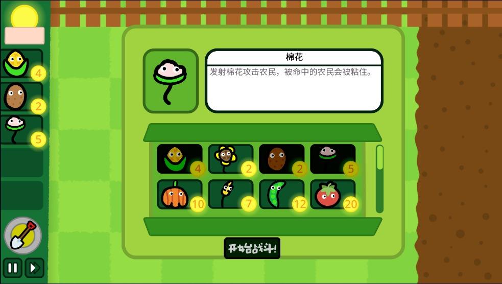 4、选择你需要的农作物,每种农作物有对应的价格,还有对应的说明,选择好后就可以开始战斗。