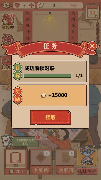 3、经典游戏每章解锁年味浓的游戏,抢红包,包饺子帮外婆找东西...…小游戏赚零花钱,能够为年夜饭添菜。