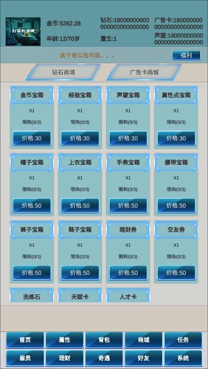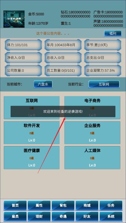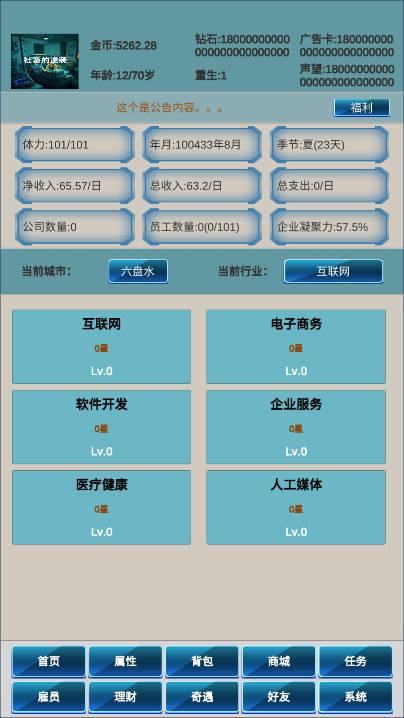 游戏提供了一个理财系统,玩家可以利用自己的积蓄进行投资和创业,积累更多财富。通过股票、房地产、创业等方式,玩家可以根据市场变化做出决策,从而提高经济水平。同时,玩家也需要管理好个人生活与财务平衡,避免因过度投资而破产。