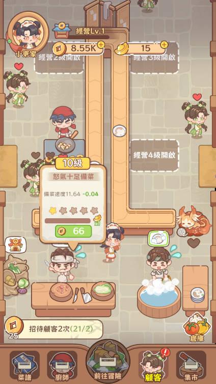 玩家将经营一家餐馆,制作各类美食来吸引顾客。通过不断解锁新的食谱和食材,提升餐馆的档次。收集资源、升级设备是提升经营效率的关键,玩家需要根据顾客的需求和口味来调整菜单,满足他们的要求,进而提升餐馆的声誉和收益。