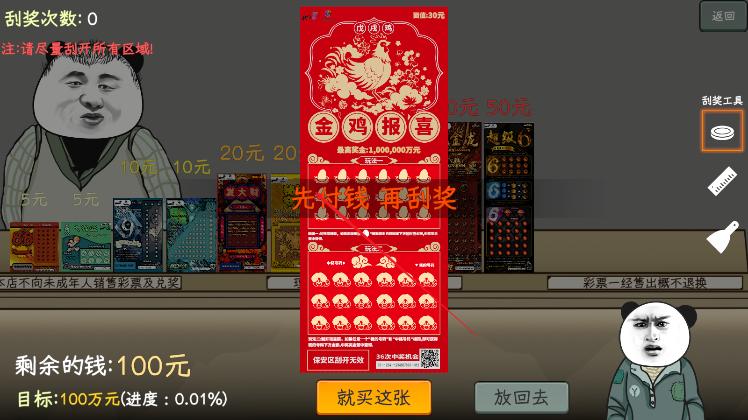 中国式彩票游戏免广告版(com.network.play.card)是一款真实好玩的模拟类型游戏,在这里面你可以体验到非常多的游戏乐趣,真实模拟了刮彩票的场景,经典的模拟器玩法,加入了暴漫的游戏风格,非常好玩的体验,解锁了免广告的模式。