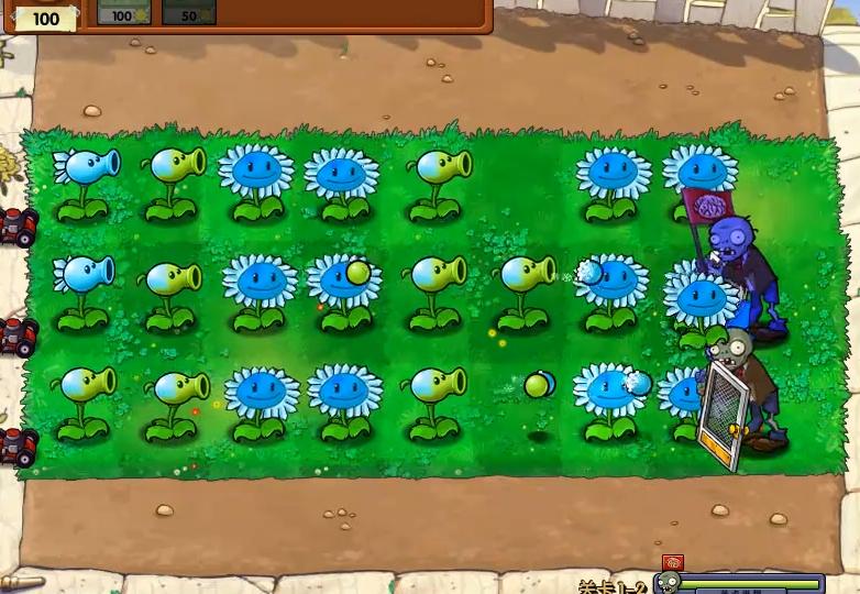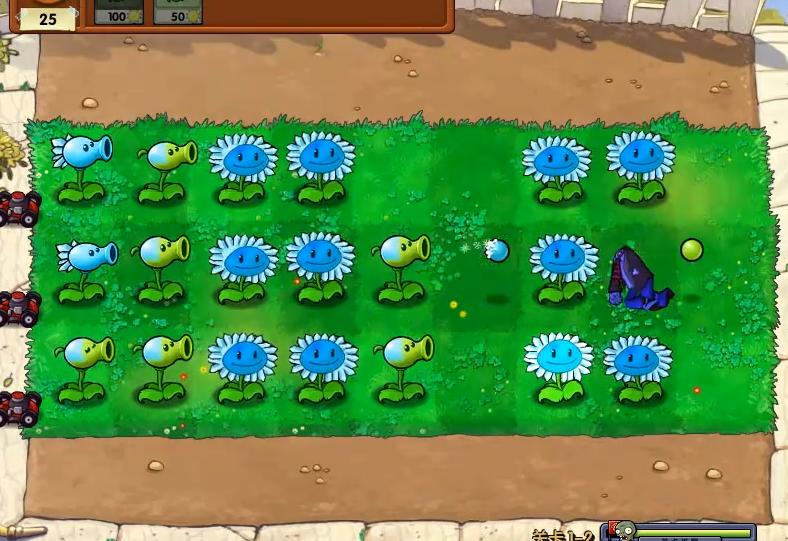 全植物冰冻: 所有植物的攻击都带有冰冻效果,能够减缓僵尸的速度,甚至将僵尸冻结。