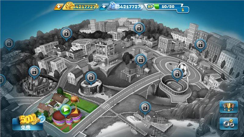 1、进入游戏后首先选择一个店铺的地点,店铺的地点需要慢慢解锁,新玩家只能够选择第一个位置。进入后可以看到一些关于餐厅的介绍,玩家需要选择关卡,每个餐厅有几十个关卡。进入关卡后游戏才真正的开始。游戏有两个场景可以进行切换,这也是其不同于其他的实操类烹饪游戏的一大特色。一个是厨房内部,一个是餐厅内部。厨房内部是用来进行盈利的部分,也是玩家需要实操的部分;餐厅内部的作用则是为顾客提供良好的环境从而增加其等待时间,在利益上的话可以得到更多的小费。