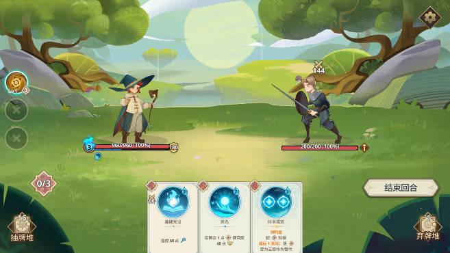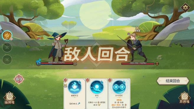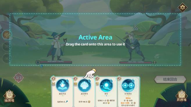 5、战斗阶段我们拖动卡牌即可使用,左边会有行动点数,而卡牌上也标注了点数,点数不够就不能发动卡牌